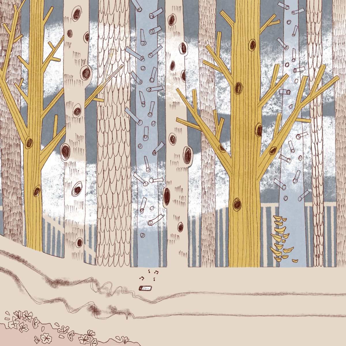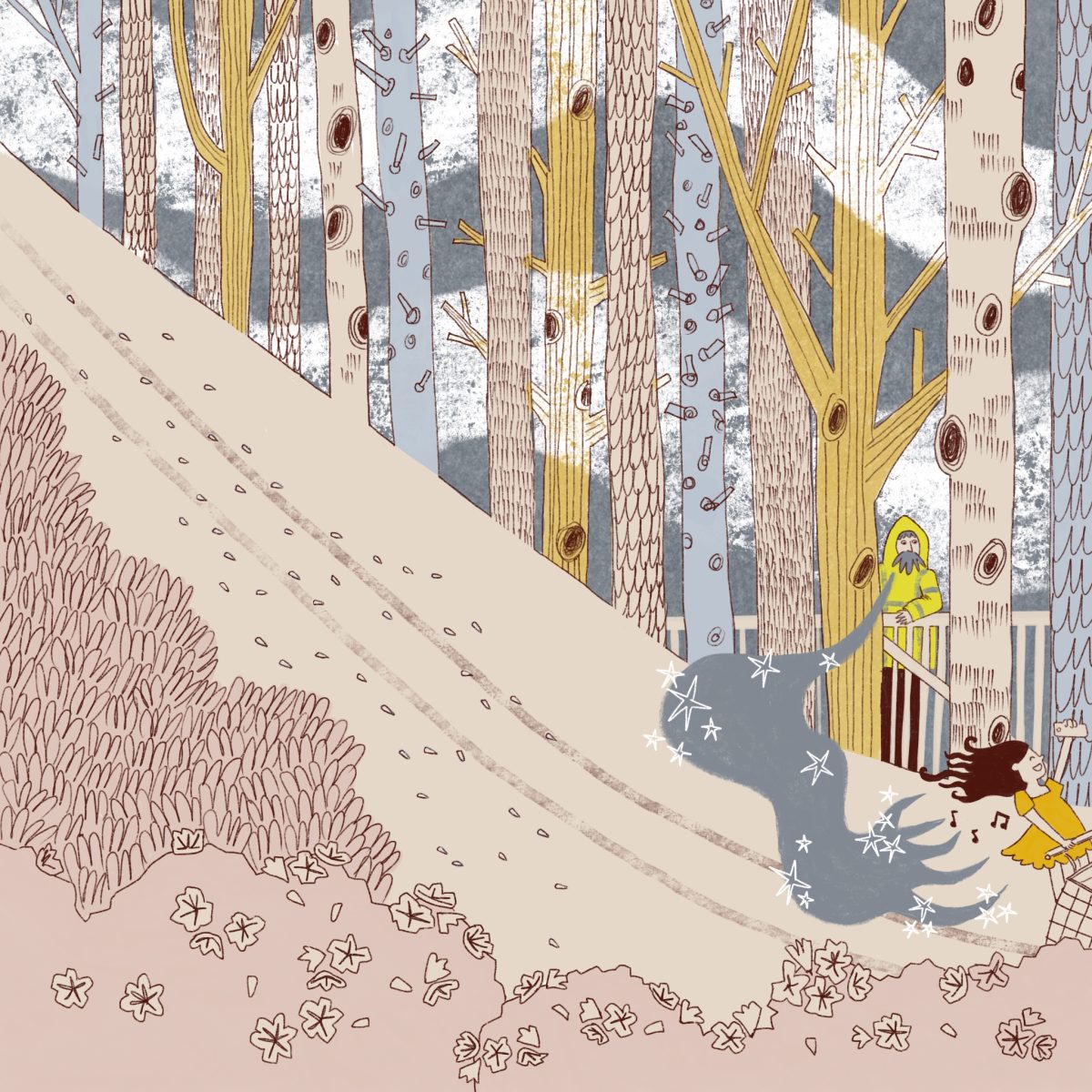 Not only were the colours themselves hideous, there were just too many of them. In the end, I developed the colour palette from working on the first illustration in the forest. I found this one tricky at first because trees are my illustration nemesis. But then I realised it’s mostly the leaves I hate to draw so I just made the trees tall and concentrated on their trunks. Problem solved. I also have a love/hate relationship with green in illustrations. After lots of attempts to use green here, I just went with yellow and blue instead. You can mix them in your retinas and make green yourself :)