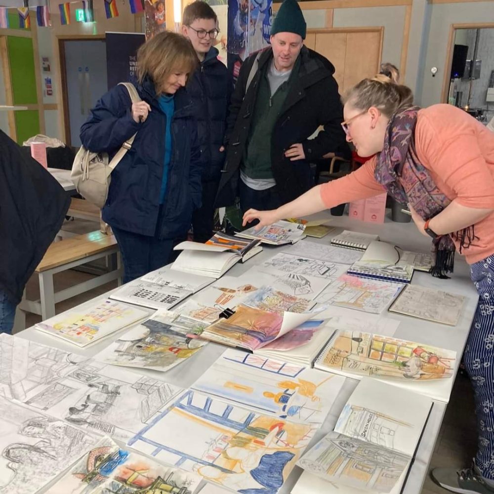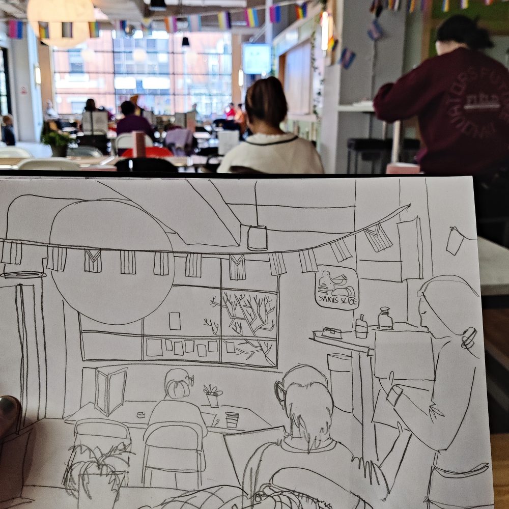 I also hosted the Reading USk meet up this month, which is always great and we have a lot of people who regularly come along now. We were based in The Biscuit Factory which has just the best atmosphere and lots of great things to draw. It also has a brilliant balcony with views down Oxford Road and across to the old stone buildings above the shops.