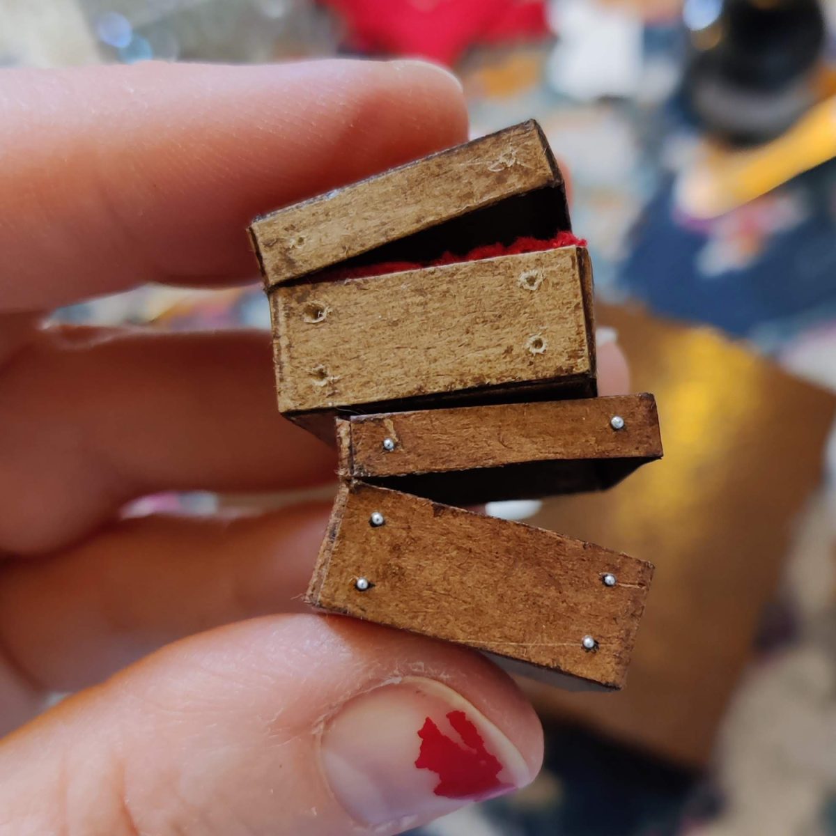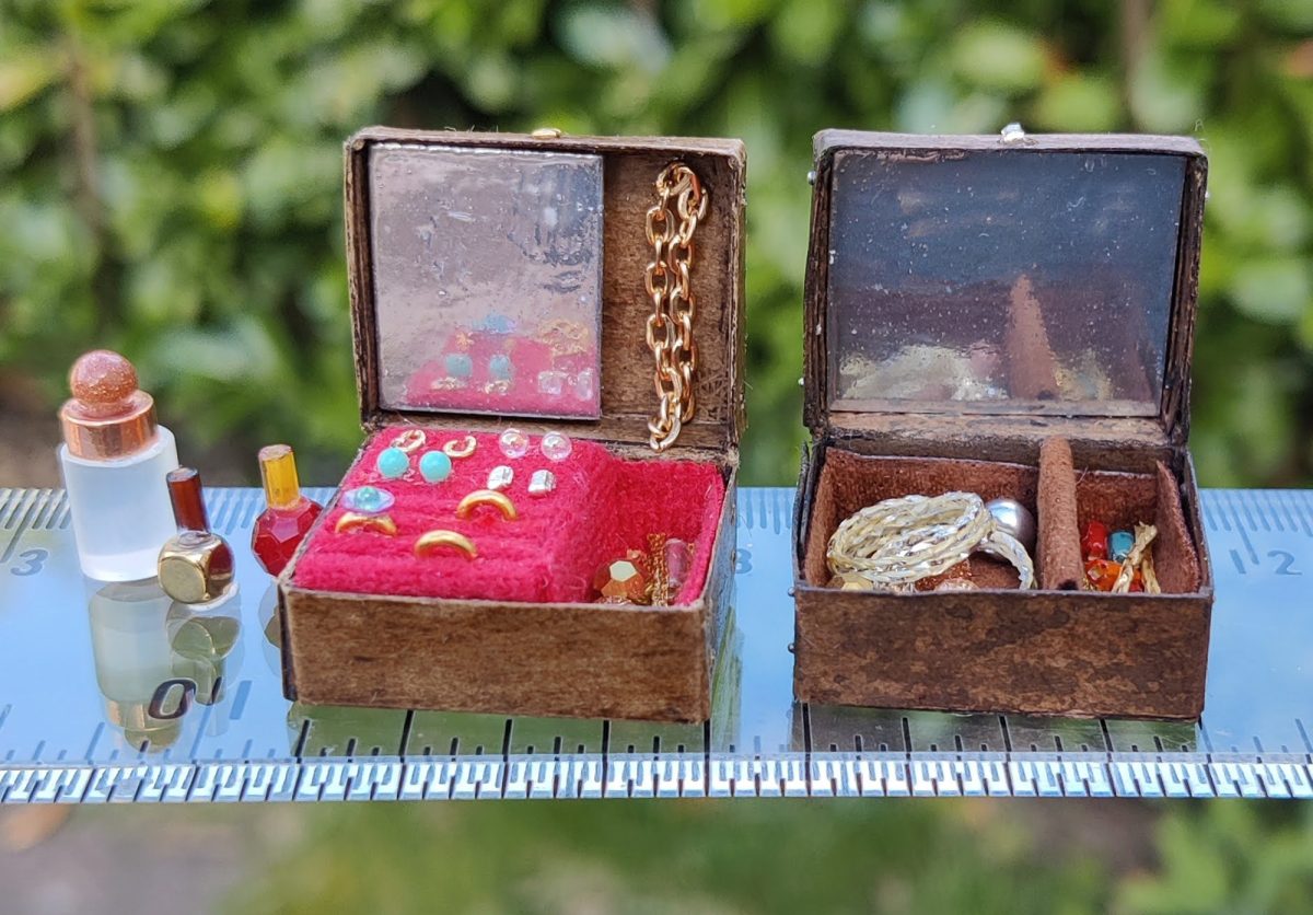 And the miniature jewellery boxes were done! I’m super happy with them both, but I might swap out the contents of the tester box to make it into either a sewing box, or a coin collection.
