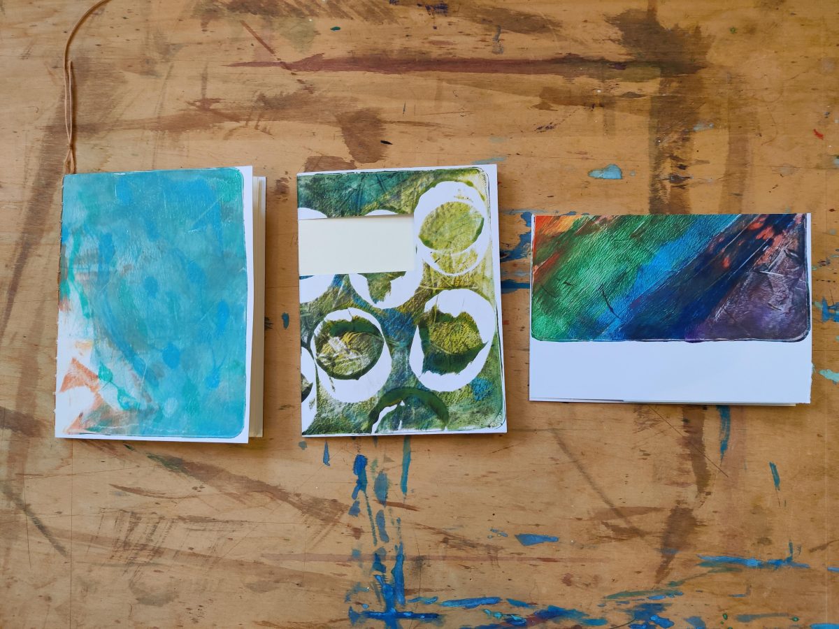 Before Christmas I spent a fantastic afternoon making sketchbooks with some arty friends. I used the prints from my gelli printing session as covers, and ended up with three little books.